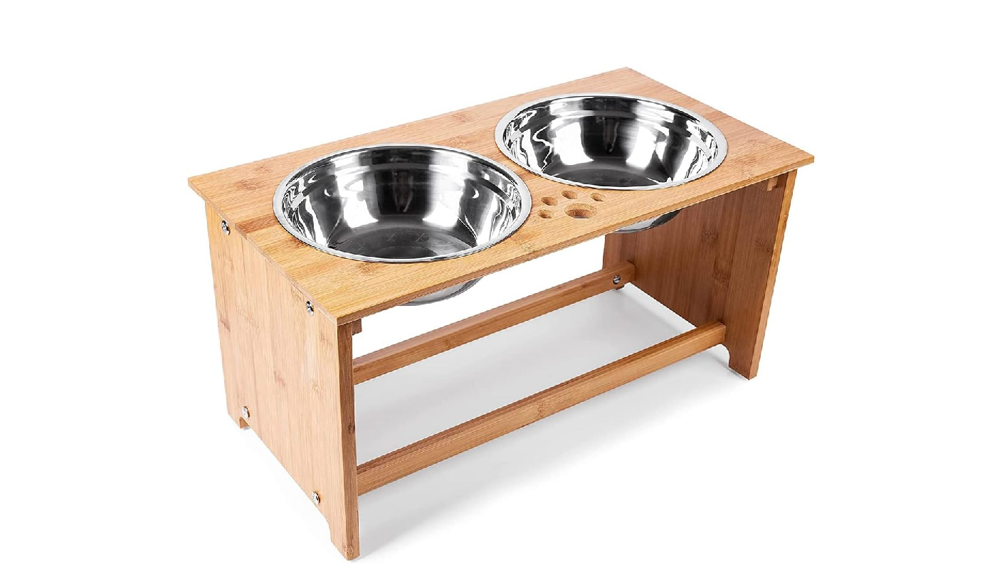Bamboo Raised Dog Bowl Stand With 2 Stainless Steel Bowls | KI-DGB- 65