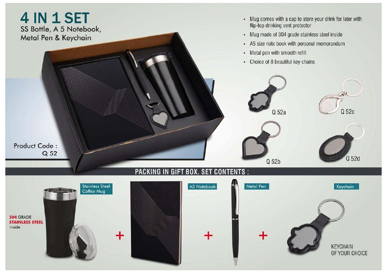 4 In 1 Set SS Bottle , A5 Notebook , Pen & Keychain | KI- STBS - 49