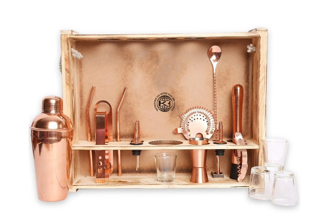 Copper Bar Set With Wooden Stand | KI-CRPG- 26