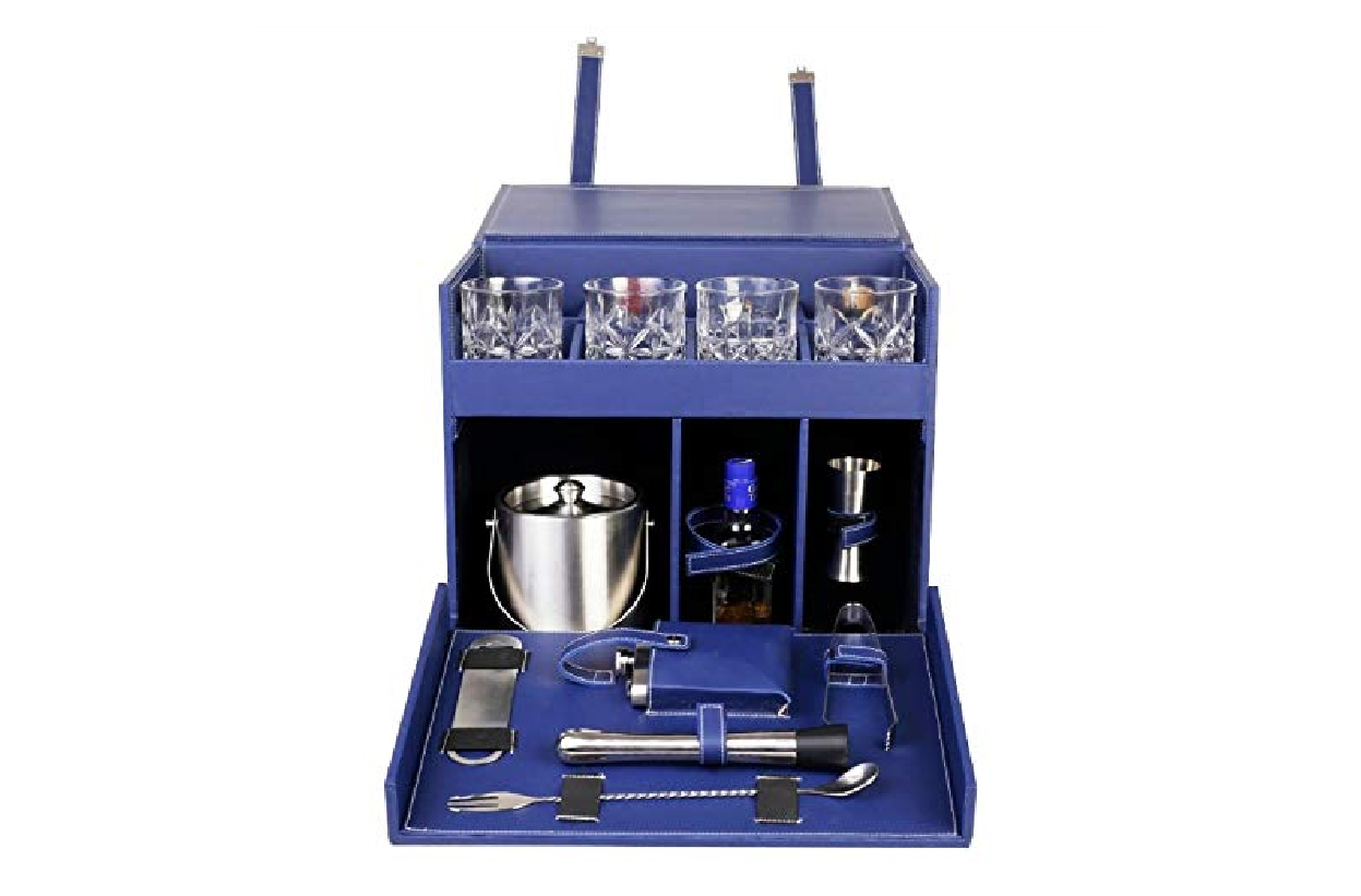 Blue Leather Brief Case With 6 Glass + Ice Bucket | KI-CRPG- 65