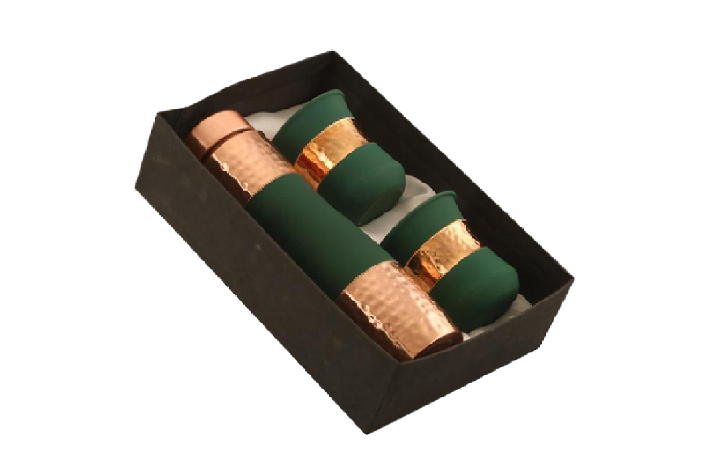 Dark Green & Gold Copper Bottle Set |KI- CRPG- 214